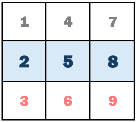 The three numbers 2, 5, and 8 are found in the basic numerical square: