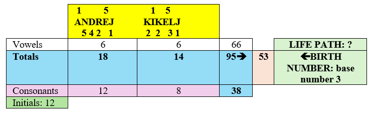 Regardless, Darja Bohiinc has publicly shared the painful experience that followed her name change. It’s evident from her case what surname changes can entail. While her birth number is not known to me, even her name numbers can reveal a great deal. Below, I present her numerological charts based on Cheiro’s alphanumeric coding.
