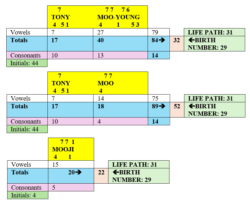 Returning to Darja Bohiinc, many years after the tragedy, she met numerologist Emily Enveritas and added an extra “I” to her surname in an attempt to avoid numbers associated with the traffic accident and other issues that had restricted her movement for years. Only later did Bohiinc realize that this name change introduced disharmony, leading to emotional challenges, but she also became more gentle in nature.[5]